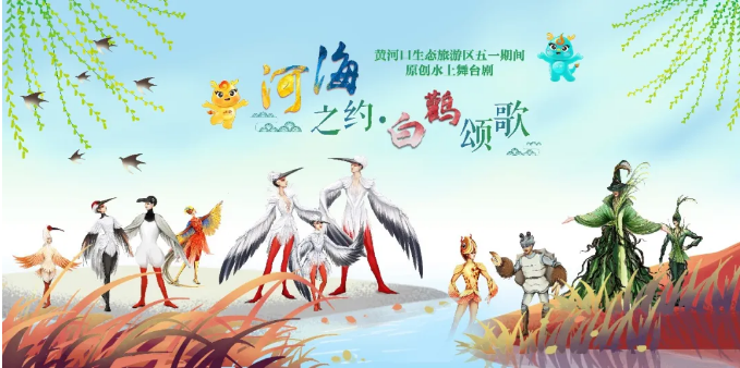 黄河口生态旅游区五一期间原创水上舞台剧《河海之约·白鹳颂歌》