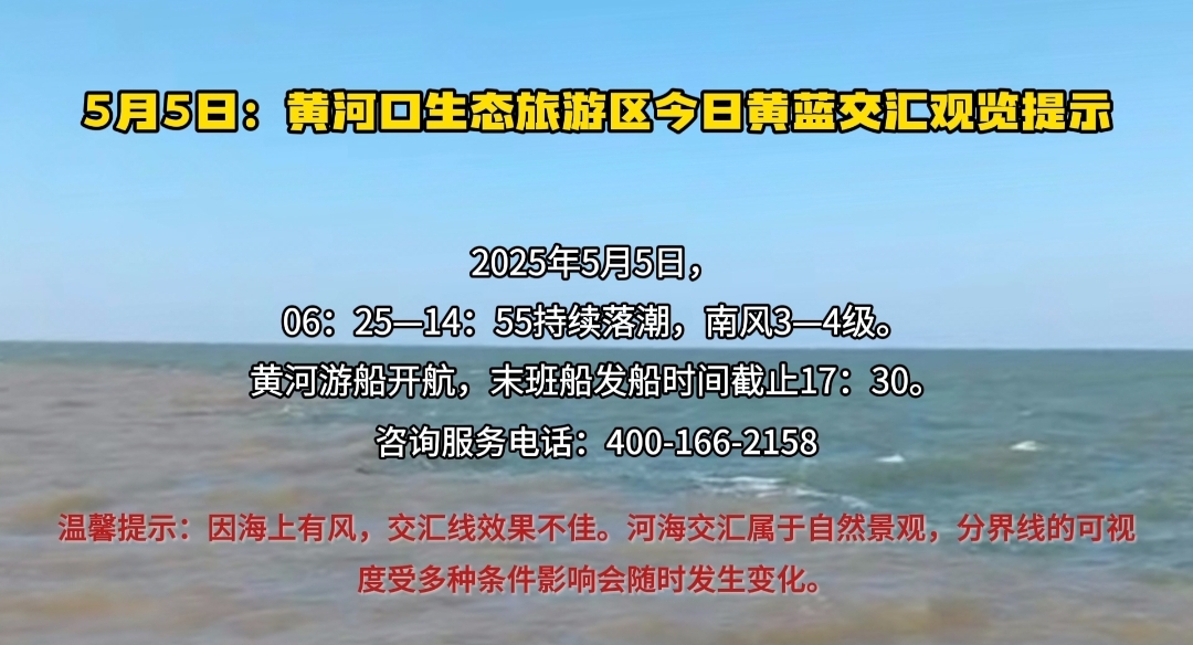 5月5日:黄河口生态旅游区今日黄蓝交汇观览提示