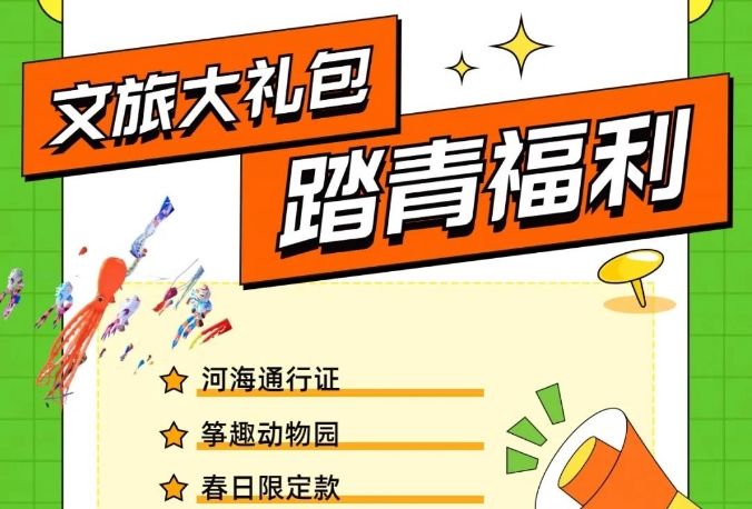 春风十里,不如礼包赠你!今年清明假期,尊龙凯时 狂撒「踏春福利」🌿尊龙凯时 大礼包,免费参与!免费送!河海秘境、踏青露营、筝趣萌兽……你的诗意假期,我们承包了!