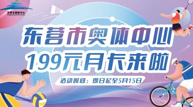 为满足广大市民的健身需求,鼓励更多人参与体育锻炼,东营市奥体中心特推出运动月卡活动,羽毛球、游泳、乒乓球、健身多种运动项目选择