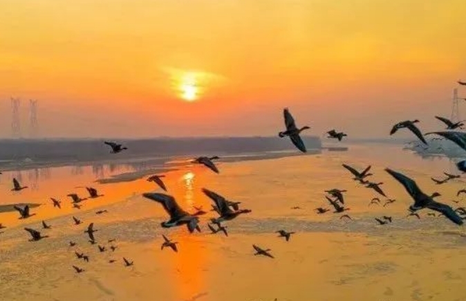 晨光初醒时,黄河口的水雾还未散尽。我站在湿地的木栈道上,听见远处传来一声鹤唳,如银针般刺破薄雾。