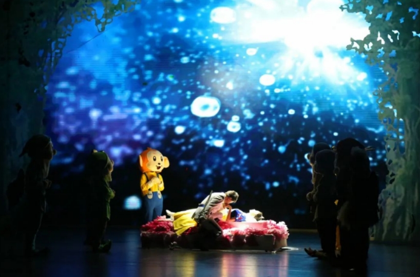 《白雪公主》再次为孩子们开启全新的梦幻世界。此剧在演出时采用多媒体舞台,通过投影技术把虚拟世界搬进现实的舞台。舞台设计大气、魔幻、唯美,加入人与投影的互动,亦真亦幻,展现裸眼3D的视觉效果。舞台表演中融入舞蹈、歌唱等艺术元素,适合亲子同赏。