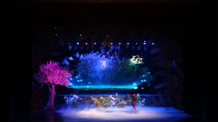 《花木兰》舞美较之前升级,呈现更加立体的舞台效果。木兰故乡的满树桃花、青山绿水美如仙境。剧中广泛运用多媒体,将战场上烽烟四起、刀光剑影的激烈交锋场景展现得淋漓尽致。