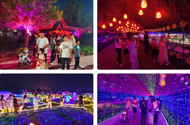 花仙谷东营之夜的光影秀是一场视觉盛宴。萤火虫世界、蘑菇童话、北极光、彩灯大世界、星际迷航、行星博物馆、网红隧道、迷雾森林、神龙摆尾、水幕电影等一系列灯光组合向游客精彩亮相,犹如梦幻般的画卷在眼前徐徐展开。