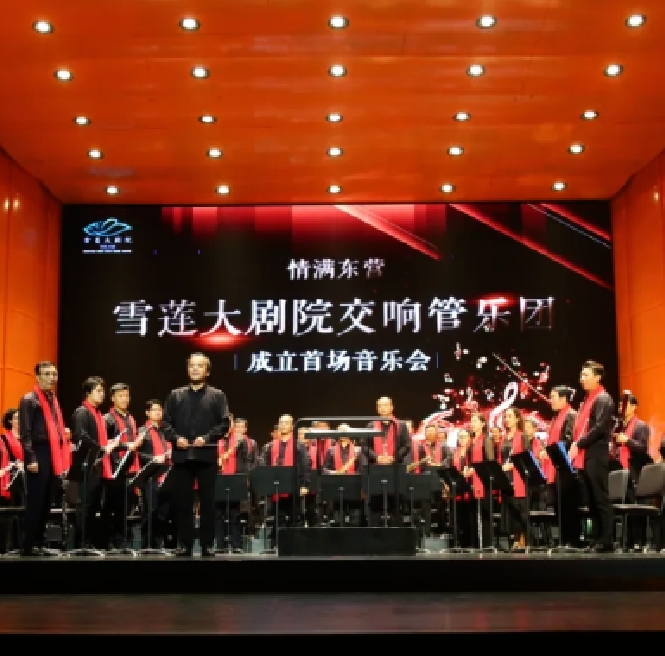 雪莲交响管乐团成立于2022年6月17日。雪莲大剧院交响管乐团,现有演奏员50人,是东营一支声部齐全、编制完善的交响管乐团。乐团以普及与提高本地区的管乐演奏艺术为己任,先后排练了四十余首中外管乐作品。